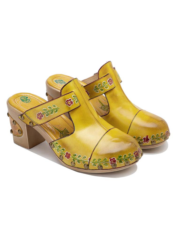 Vintage Handmade Round Toe Floral Slippers
